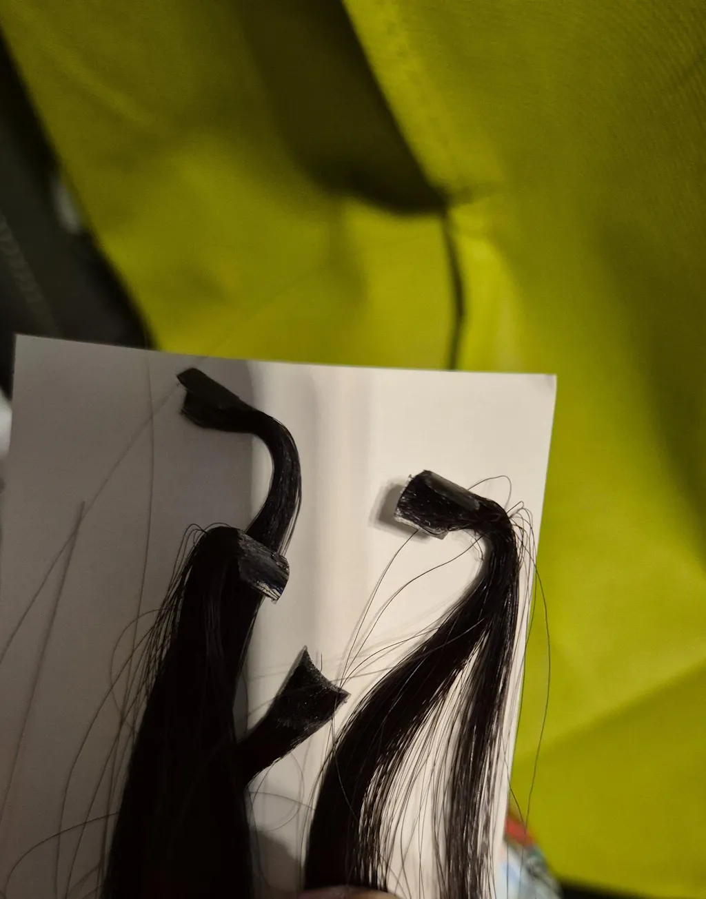 - Una volta attaccato lo stencil, posiziona la ciocca di capelli veri con l'apertura a U rivolta verso l'alto, vicino al cuoio capelluto.